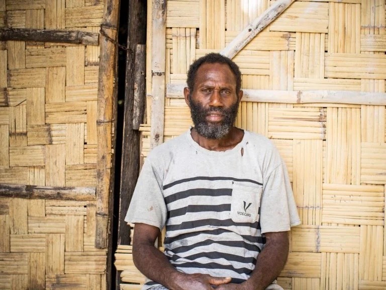 Patrick, dessen Lebensgrundlage durch den Zyklon Harold auf Vanuatu zerstört wurde